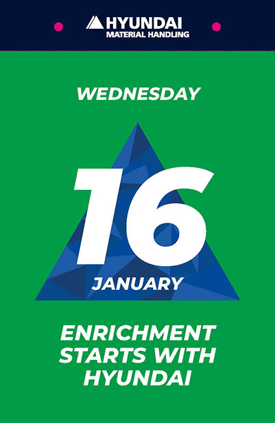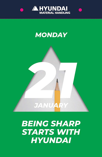 For an assignment at my internship I helped design a tear-off calendar for Hyundai Material Handling. For every date we had to come up with a different word and there had to be a triangle in the same spot on every page. For this assignment it was also very important to use the companies colours. Made using Adobe InDesign, Adobe Illustrator and Unsplash.